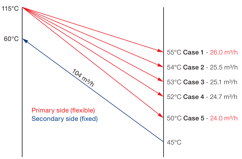 Temperatuur- & debietverandering (volgens thermische efficiëntie van de warmtewisselaar)